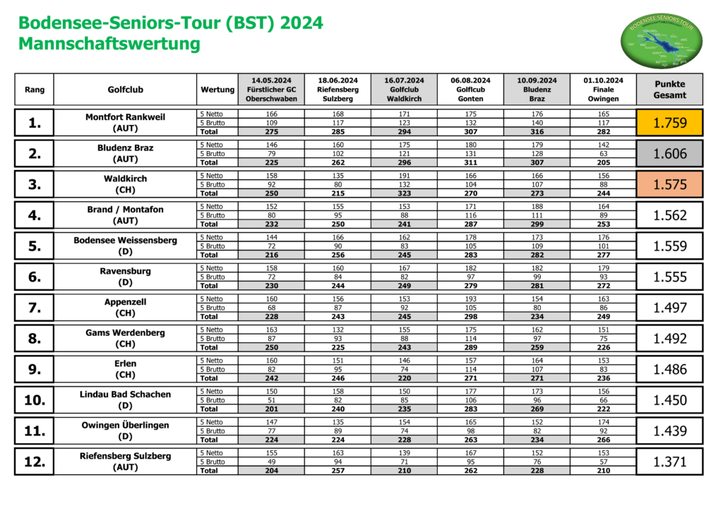 Verdienter Sieger der BST 2024, wurde mit einem einmaligen Durchmarsch, der GC Rankweil aus Österreich mit 1759 Punkten.