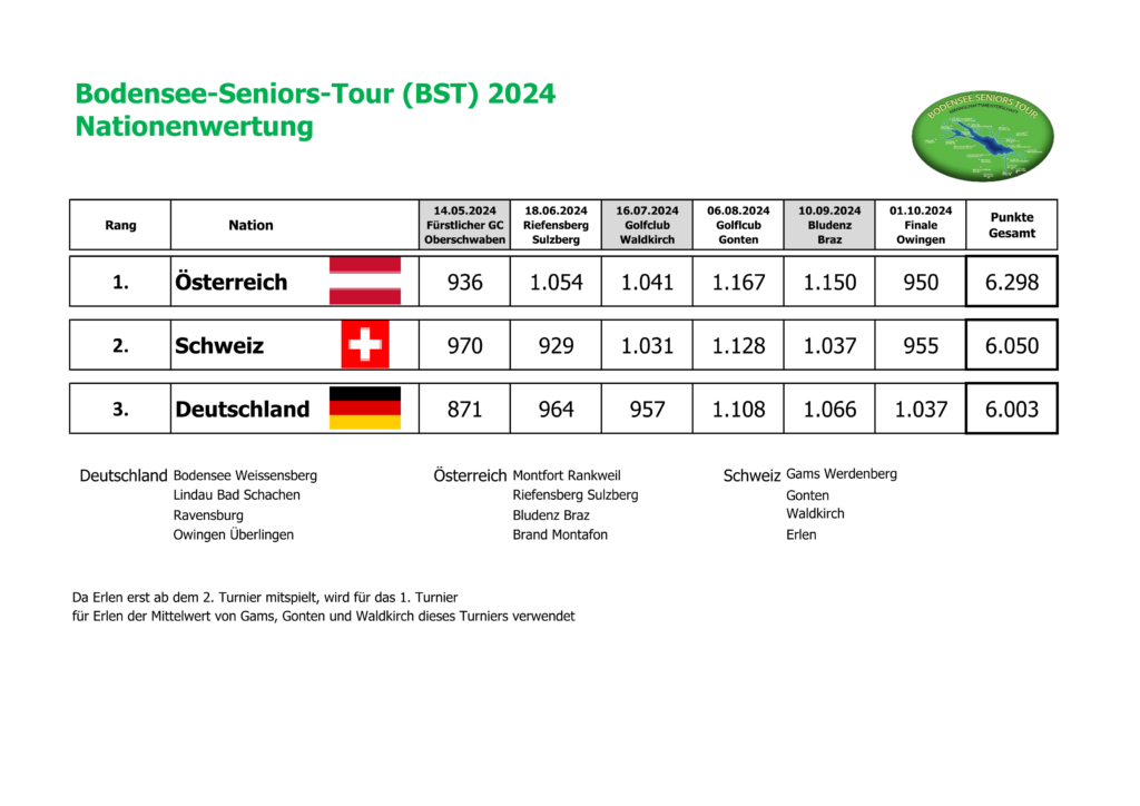 Hier finden Sie alle Manschaftsergebnisse und Auswertungen der Turniere der Bodensee Seniors Tour der vergangenen Saisonen.